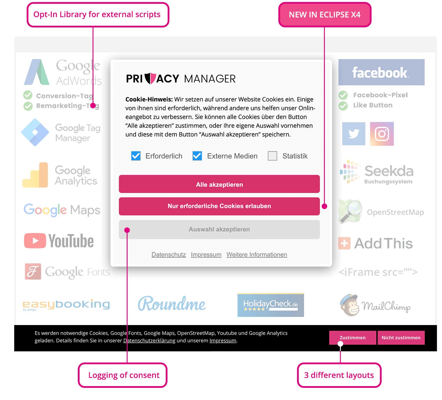 The best cookie consent module for Contao. With numerous scripts for the most common solutions. Easy to integrate your own scripts.